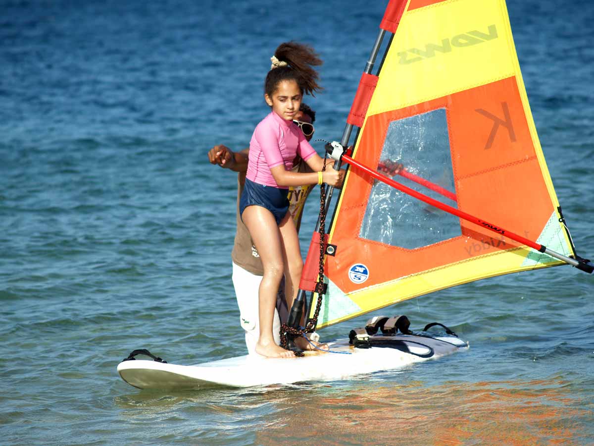 This course is an ideal way to find out what windsurfing is all about. You will learn how to balance on the board, raise the rig, sail off and know what to do if you fall off, tack and simple jibe. You will be able to windsurf independently in light or middle wind conditions.